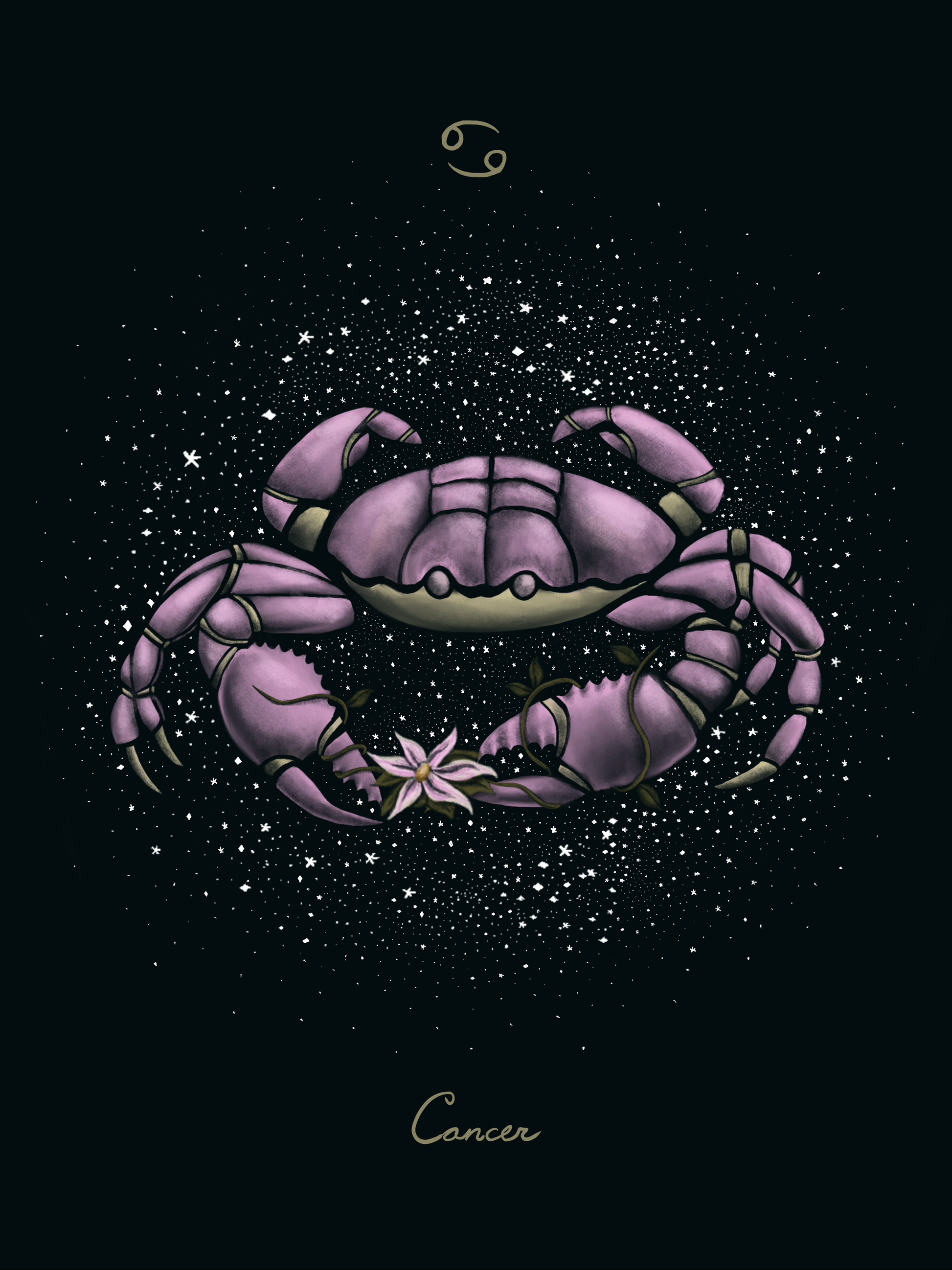 a museum quality poster of a dreamy cancer astrology illustration, printed on high quality fine art paper.